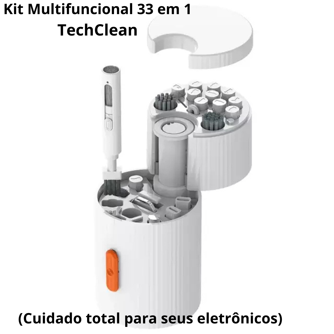 O TechClean – Kit Multifuncional 33 em 1 foi criado para quem quer manter seus eletrônicos limpos, conservados e funcionando como novos, sem risco de danos.